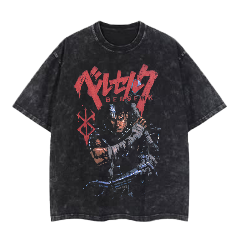 Berserk Guts Printed Men's Washed T-Shirt |