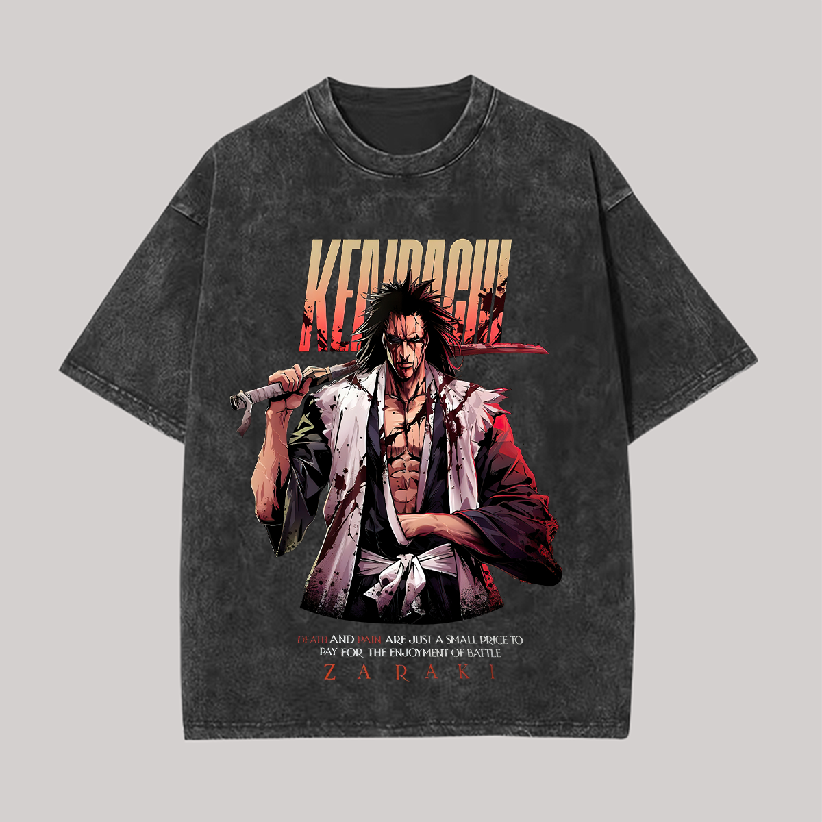 Bleach Kenpachi Zaraki Printed Unisex Washed T-Shirt |