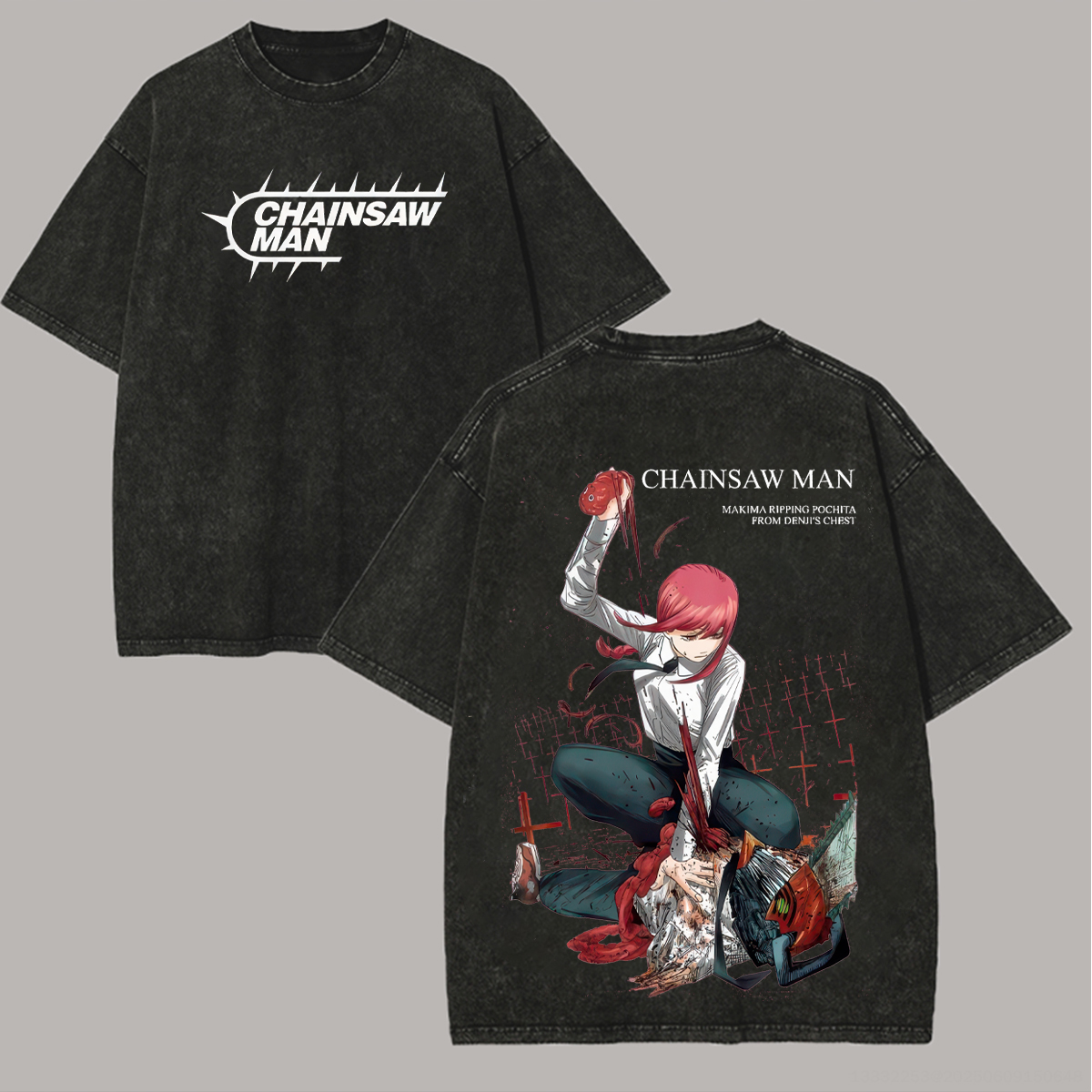 | Product Name | Chainsaw Man Makima & Denji Printed Unisex Washed T-Shirt | ||