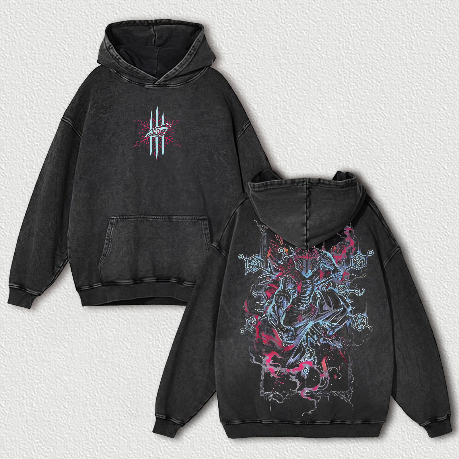 Demon Slayer Akaza Printed Unisex Washed Hoodie |
