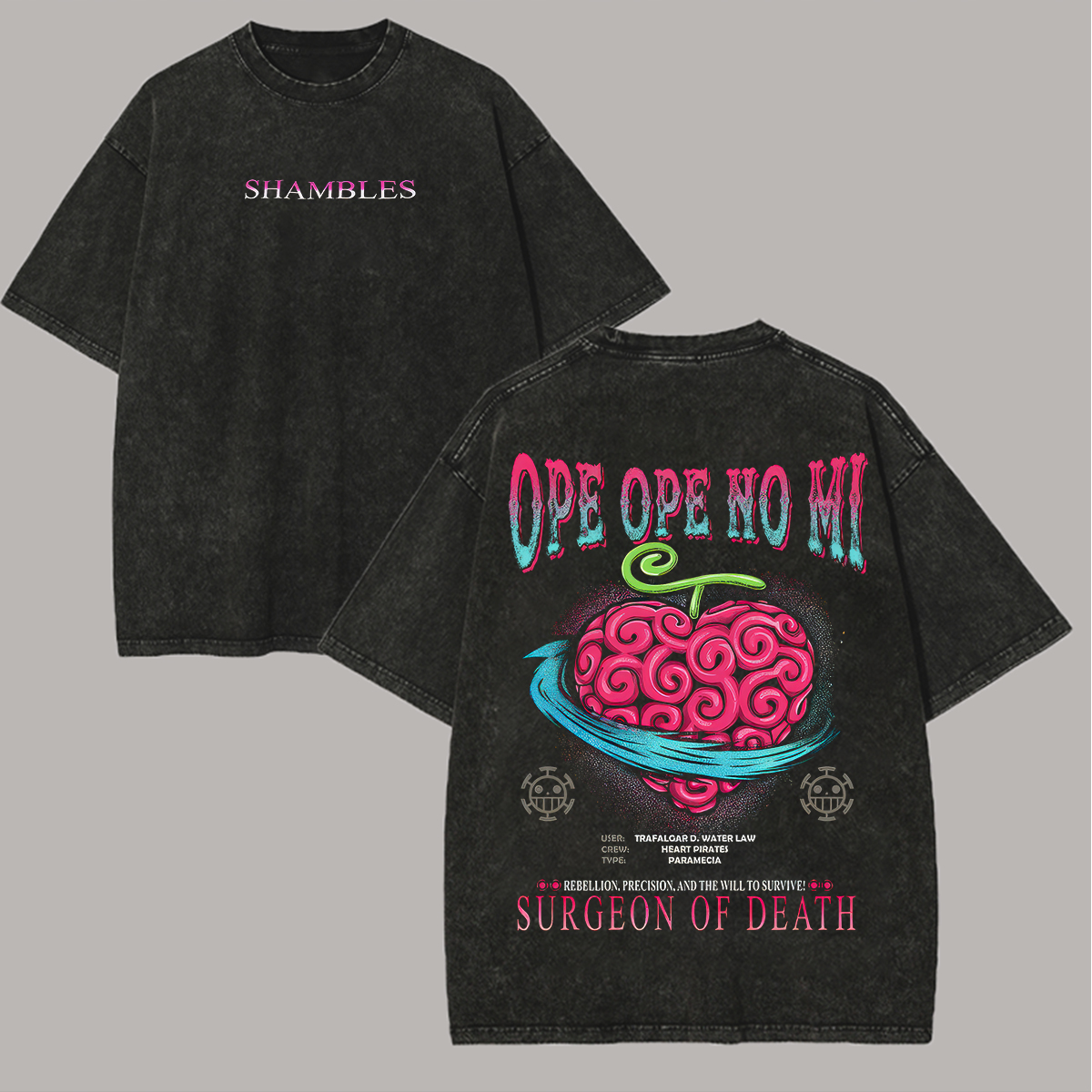 Devil Fruit Surgeon of Death Printed Unisex Washed T-Shirt |