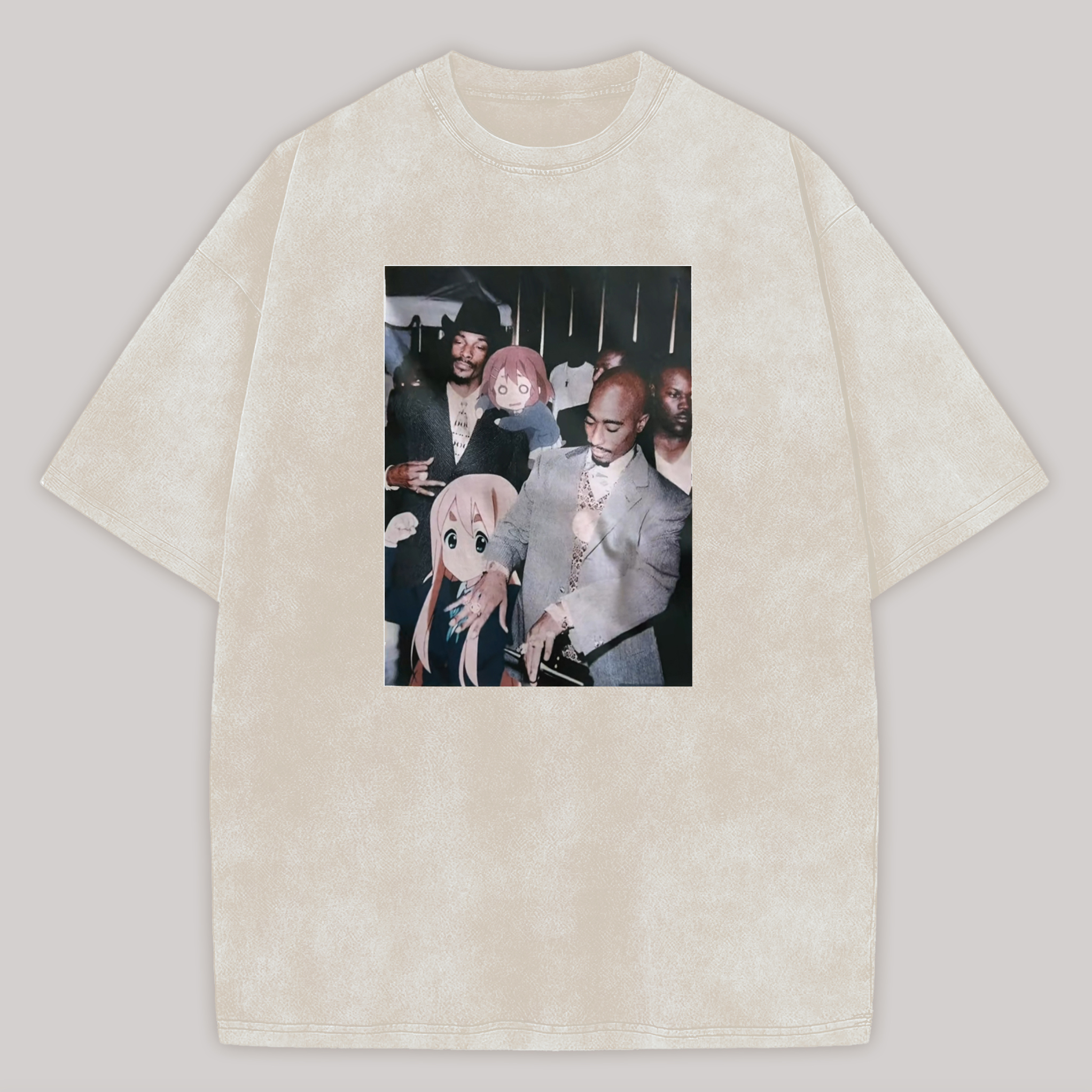 Funny Tupac Amaru Shakur and Anime Girls Printed Unisex Washed T-Shirt |