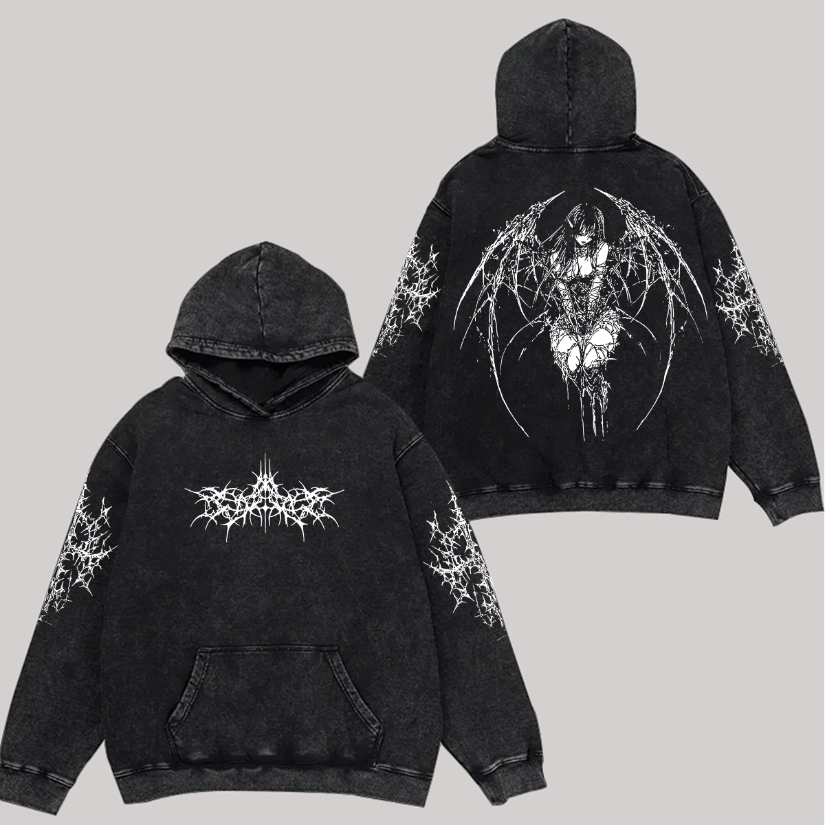 Goth Devil Angel Printed Unisex Washed Hoodie |