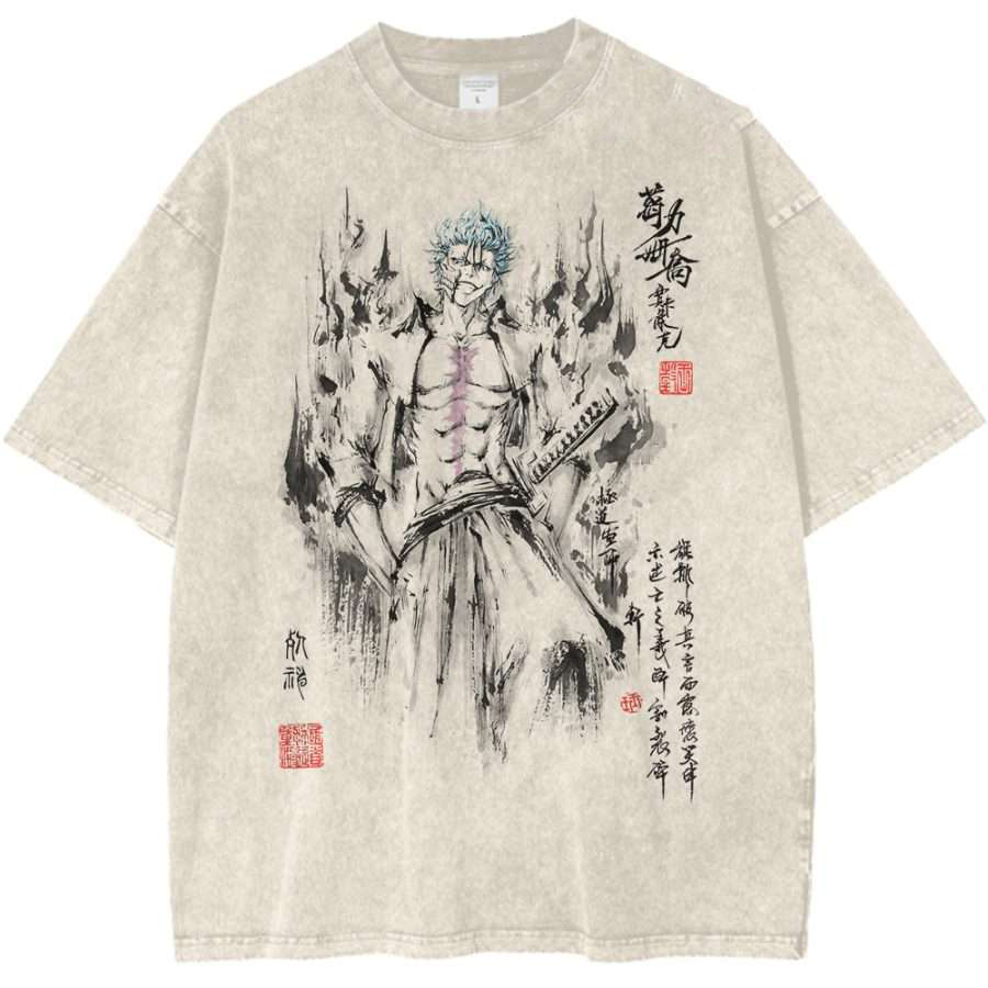 Grimmjow Jaegerjaquez Bleach Printed Men's Washed T-Shirt |