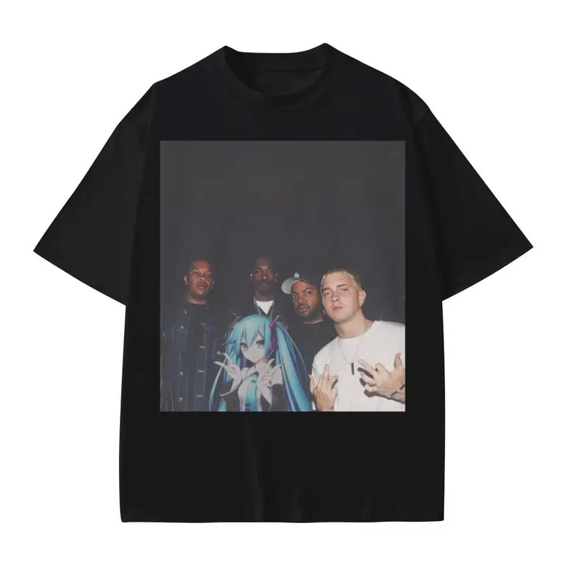 Hatsune Miku Snoop Dogg Ice Cube Eminem Dr Dre Anime Gangsta Printed Men's Oversized T-Shirts |