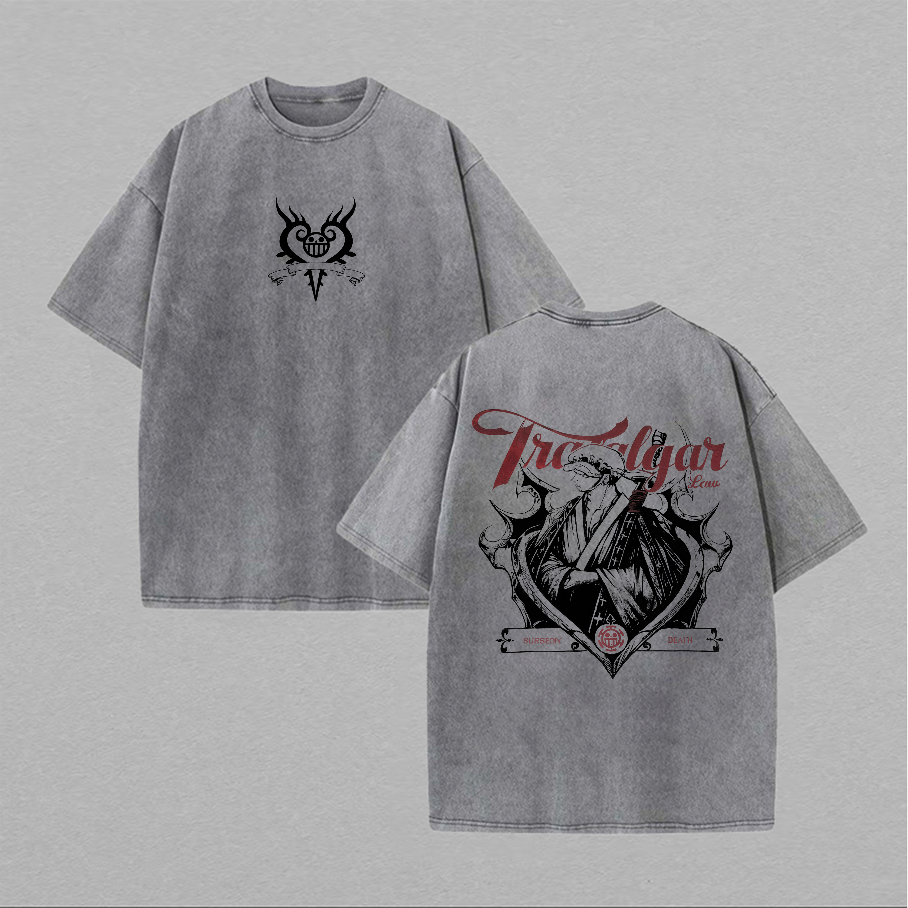 | Product Name | One Piece Trafalgar Law Printed Unisex Washed T-Shirt | ||